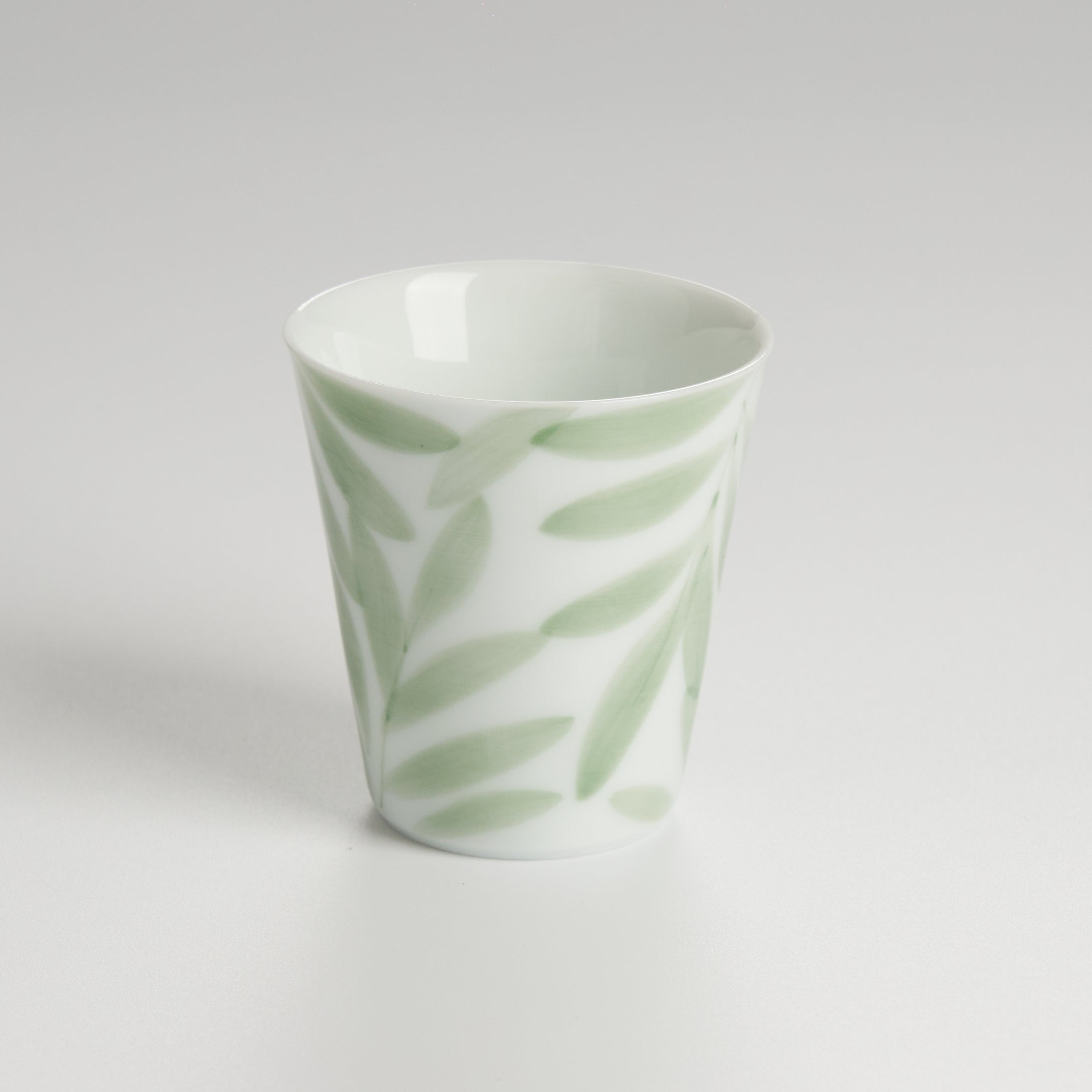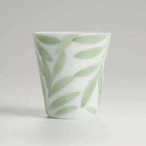 If you bought the Green Willow Gaiwan, you need this cup to complete the look. It has the same "Green Silk" leaf design hand-painted on the side. The cup is tall with straight sides, holding about 40ml. This shape is great for smelling the tea's fragrance before you drink. It’s a simple, high-quality piece for your daily tea ritual.